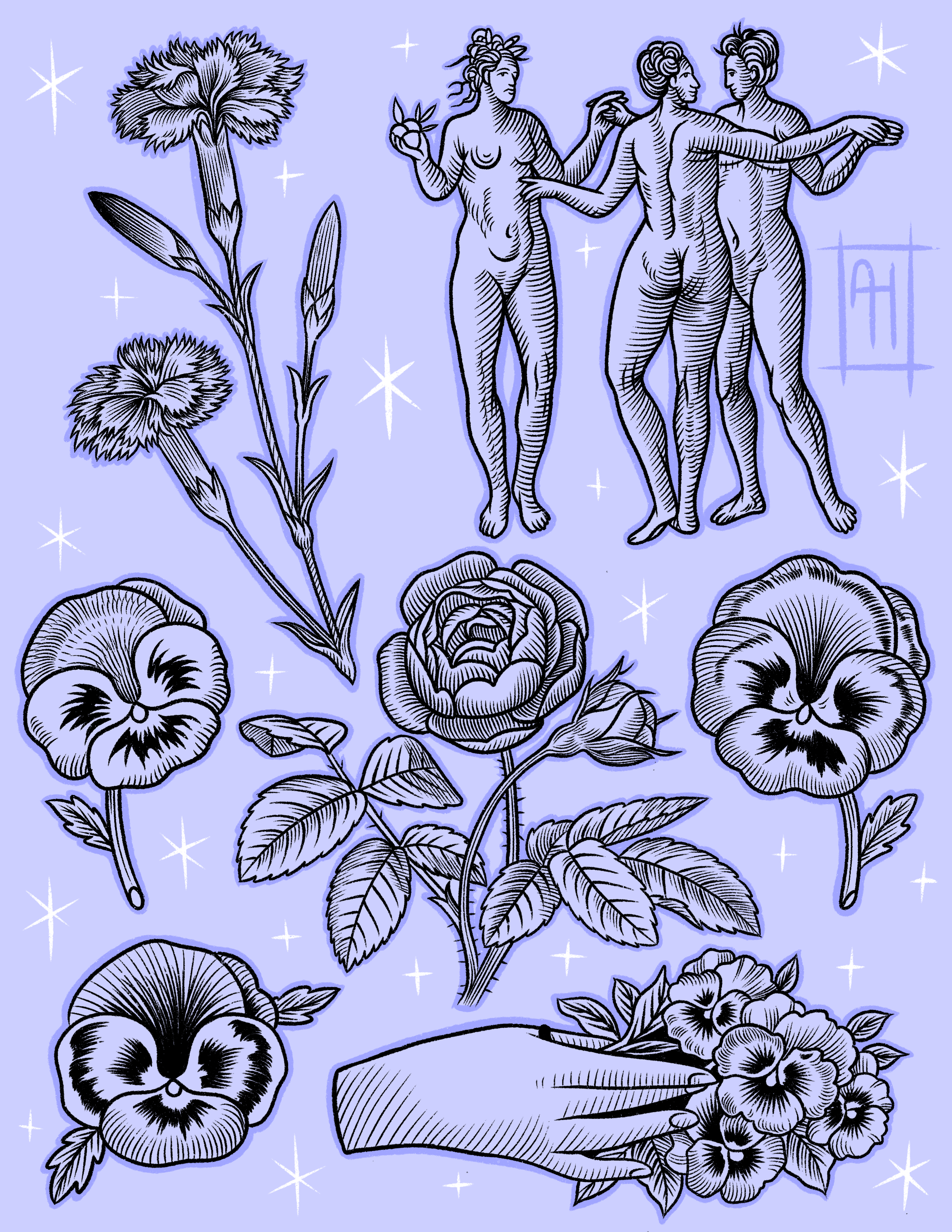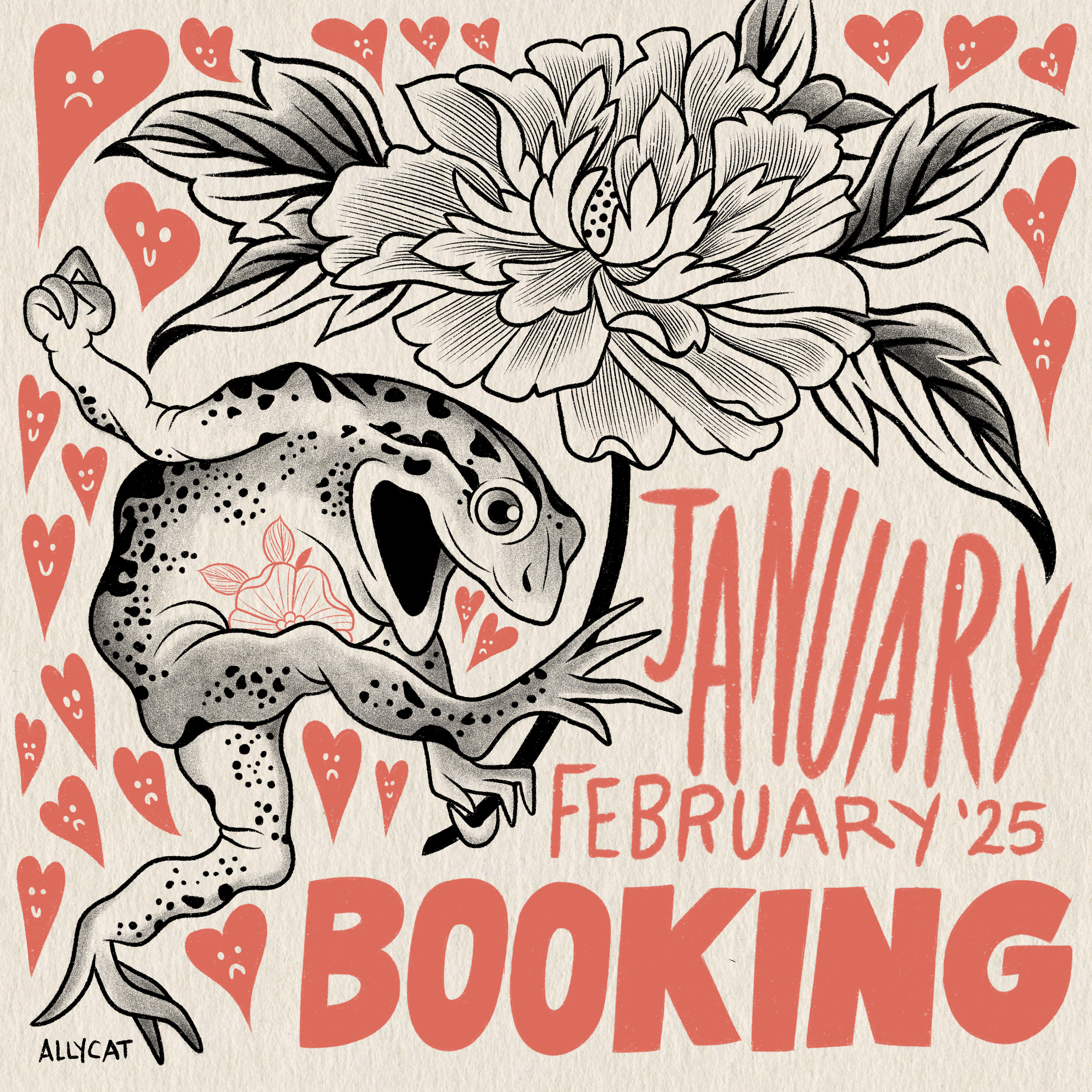Any other commission or job inquiries can be sent to allycatttttt.tattoos@gmail.com or belle@lovelettercreative.studio